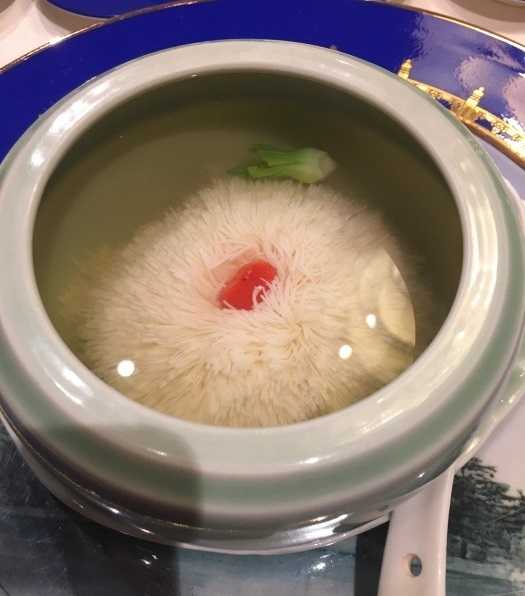 一块嫩豆腐切成绒状,像菊花盛放,顶级的刀工水平,让人大开眼界。高汤鲜美,值得一试。